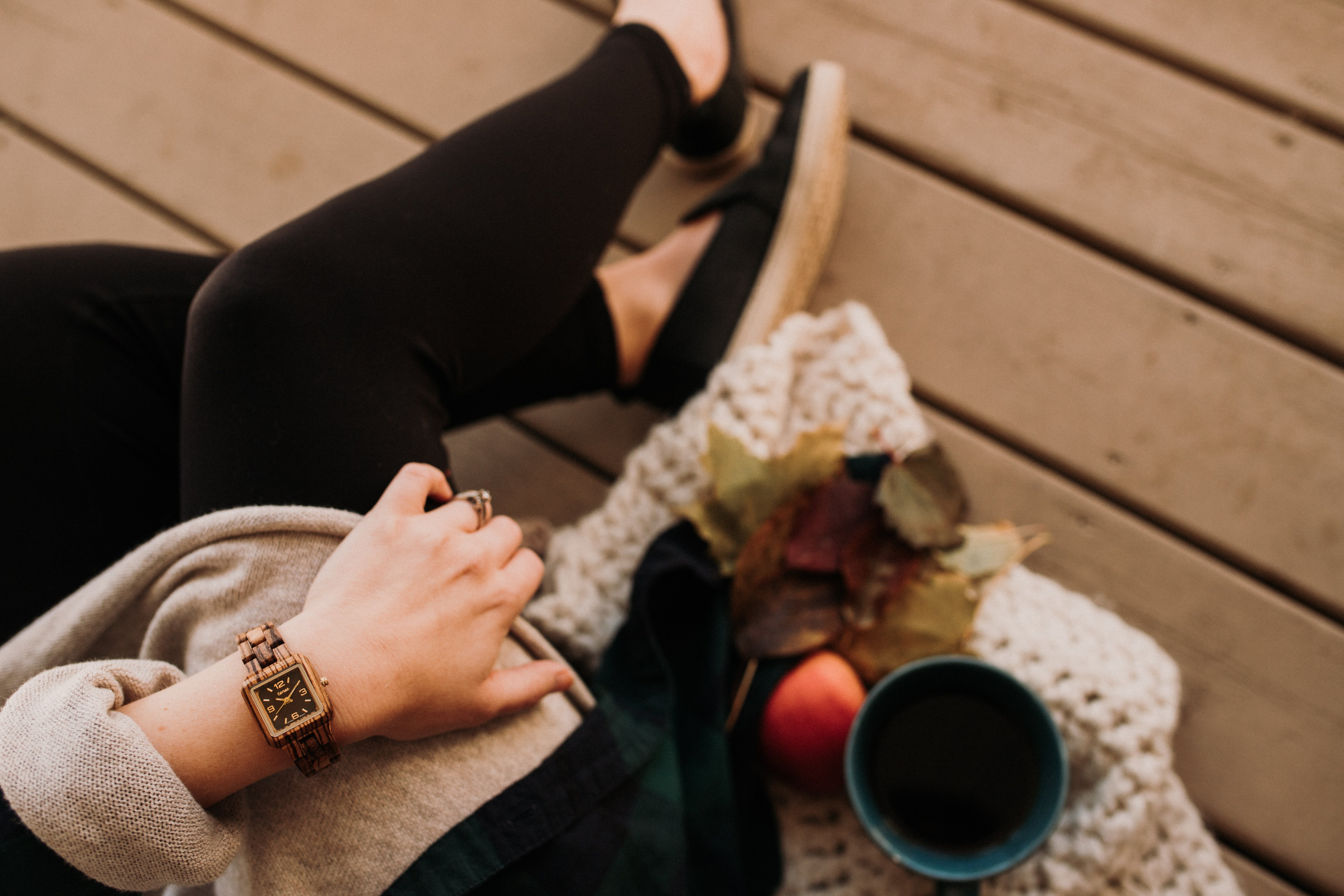 This women's watch shows hour, minute, second markers on a rectangular face. The Small Summit is made from 100% recycled and reclaimed wood, with Miyota watch movement from Japan and is adjustable in size with stainless steel crown and clasp.