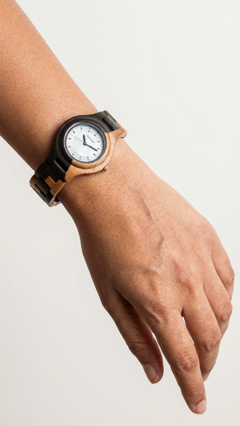 This unisex watch shows hour, minute, and second markers on a round face. The Pacific is made from 100% recycled and reclaimed wood, with Miyota watch movement from Japan and is adjustable in size with stainless steel crown and clasp.