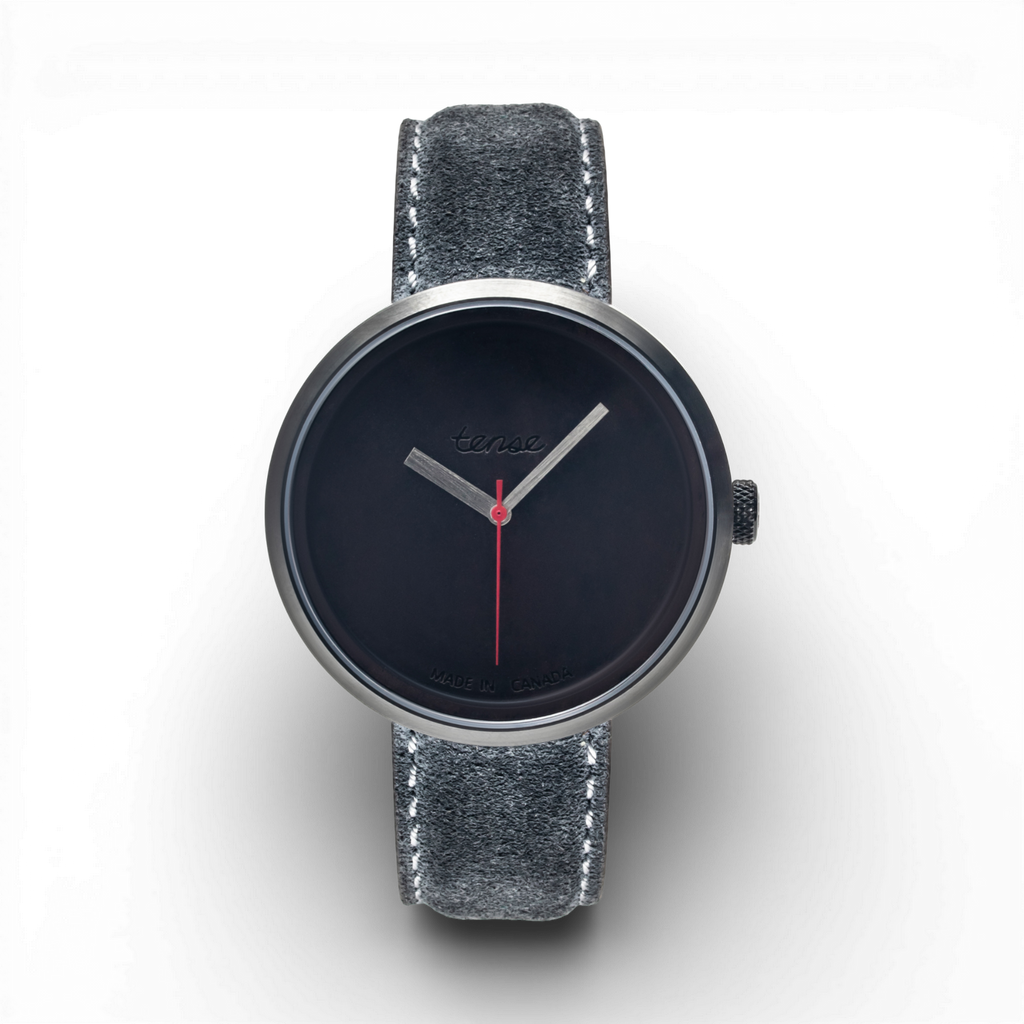 The Cypress Watch has a wood dial and metal case on a leather strap, combining multiple natural materials as part of the new Tense Hybrid Watch Series. This watch is unisex. It contains Swiss-made Ronda 763 Movements protected by scratch-resistant Sapphire Crystal and corrosion resistant Surgical Grade 316 Stainless Steel finished with PVD coating. It has a waterproof rating of 5 ATM. The strap is made of genuine Italian Leather.