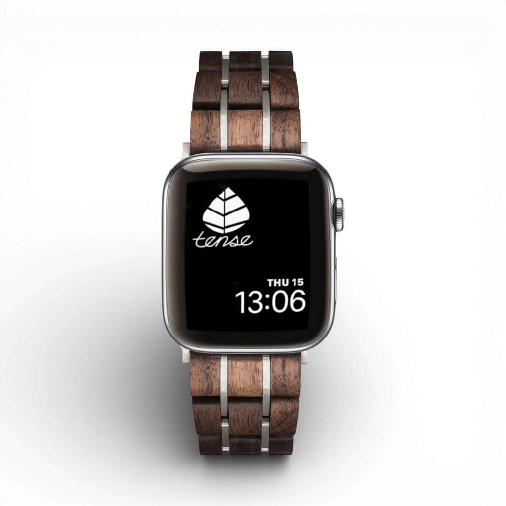 Inspired by Technology, Consciously Created. The Tense Apple Watch Band features stainless steel adapters, clasp and reinforced links between our reclaimed walnut or leadwood band. Compatible with all Apple Watch models. Easily adjustable to fit all sizes.