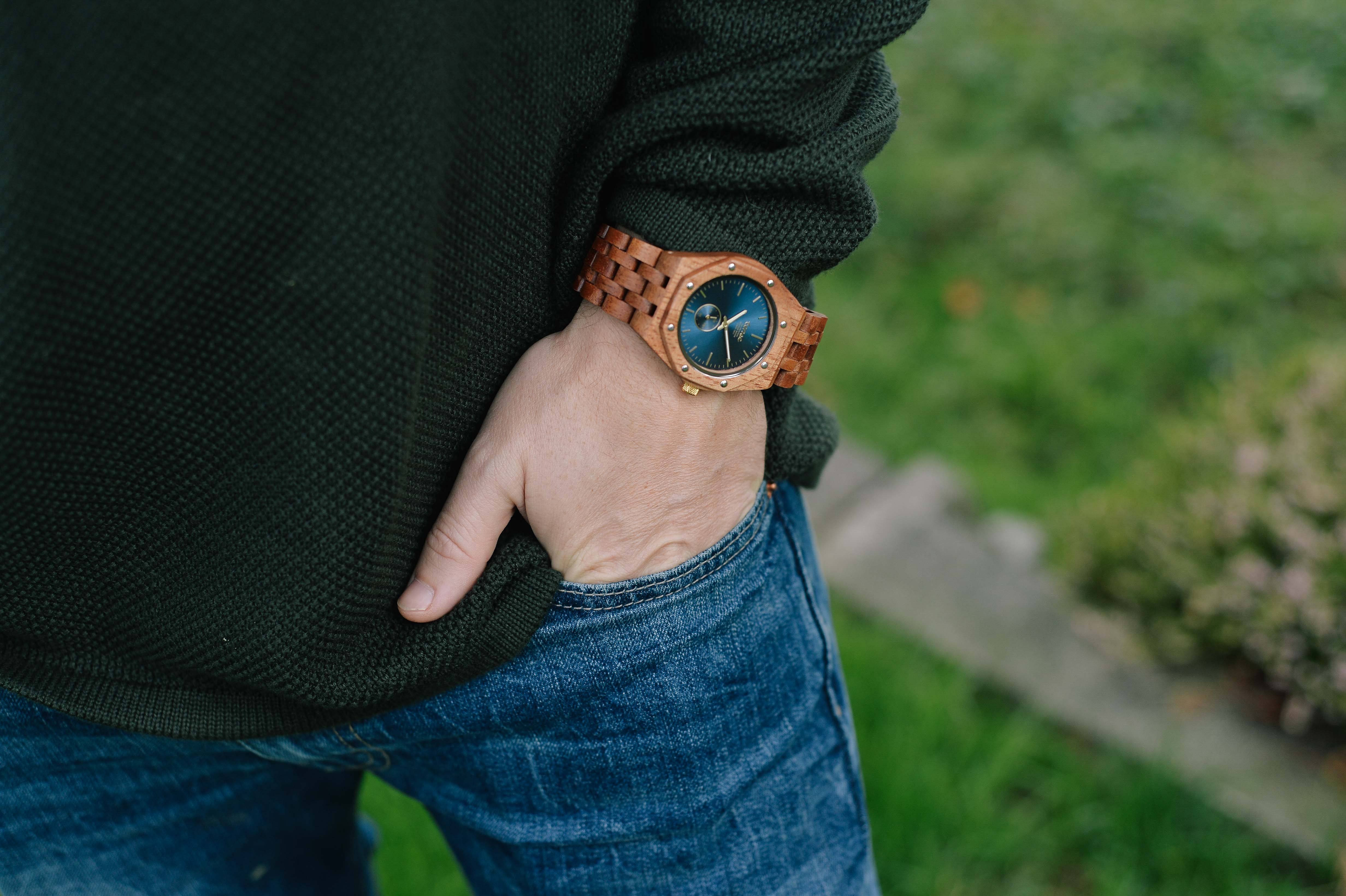 This men's watch shows hour, minute, and second markers on an octagonal face. The Washington North is made from 100% recycled or reclaimed wood, with Miyota watch movement from Japan and is adjustable in size with stainless steel crown and clasp.