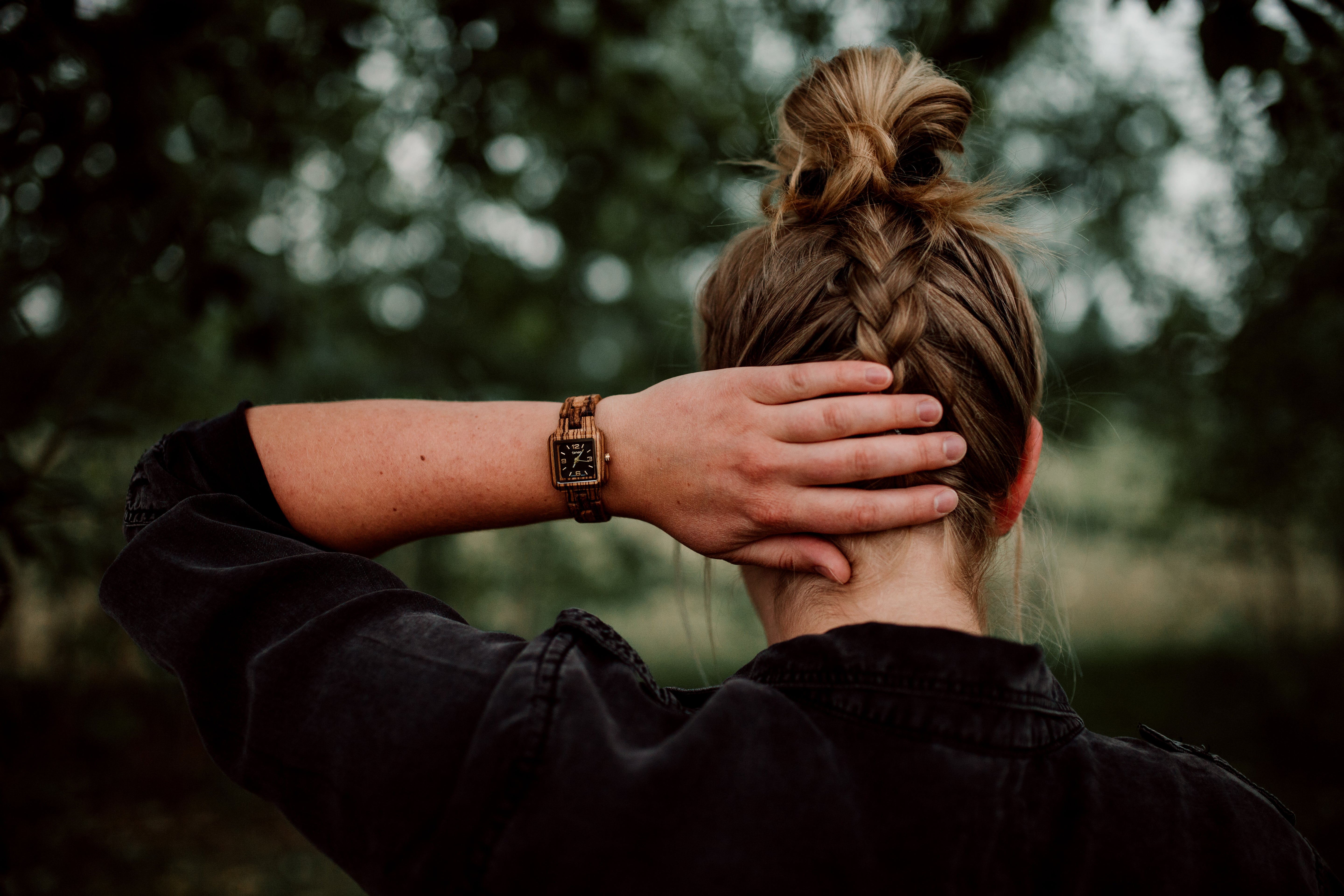 This women's watch shows hour, minute, second markers on a rectangular face. The Small Summit is made from 100% recycled and reclaimed wood, with Miyota watch movement from Japan and is adjustable in size with stainless steel crown and clasp.